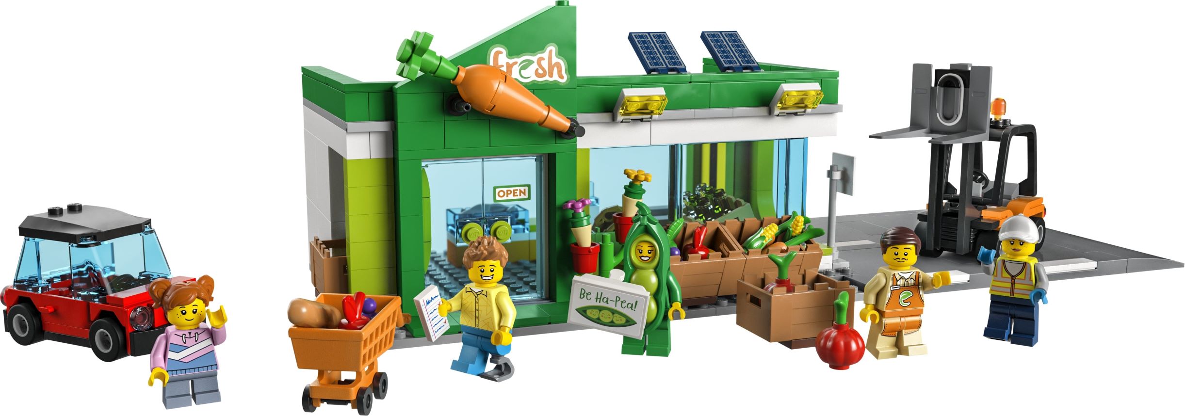 העמידו את הרכב בחנייה, קחו עגלת קניות ובואו למכולת של לגו סיטי הצטרפו למוכר וטפלו בלקוחות מרוצים. עלו על המלגזה והעבירו ארגזים של ירקות טריים. העמיסו מוצרים על מדף התצוגה והעבירו את הבקבוקים למיכל מיחזור. גילאי: 6+ / מידות: 28.2X48X6.1 ס”מ / ארץ ייצור: הונגריה / מספר חלקים: 404