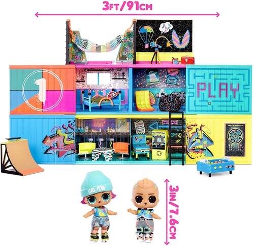 גלו למעלה מ-40 הפתעות בקלאבהאוס – מקום הבילוי האהוב על בובות ה-LOL. הפלייסט נראה כמו 2 קונטיינרים מעוצבים שהופכים לקלאבהאוס מרוהט בעל 3 קומות. הקלאבהאוס כולל למעלה מ-7 אזורי בילוי שונים: חדר משחקים, אזור סקייטבורד, פטיו, חדר קולנוע, חדר שינה, מטבח ועוד! חשפו וגלו גם אביזרים ורהיטים כמו שולחן כדורגל, פוף, מיטה, ערסל וכורסאות צבעוניות. בנוסף הדגם כולל גם 2 בובות ייחודיות בלבד (בת ובן). בסיום המשחק ניתן לקפל את הקלאסהאוס בקלות קח שתוכלו לקחת אותו לכל מקום. גילאי: 4+ / מידות: 35.56X55.88X15.24 ס”מ / ארץ ייצור: סין